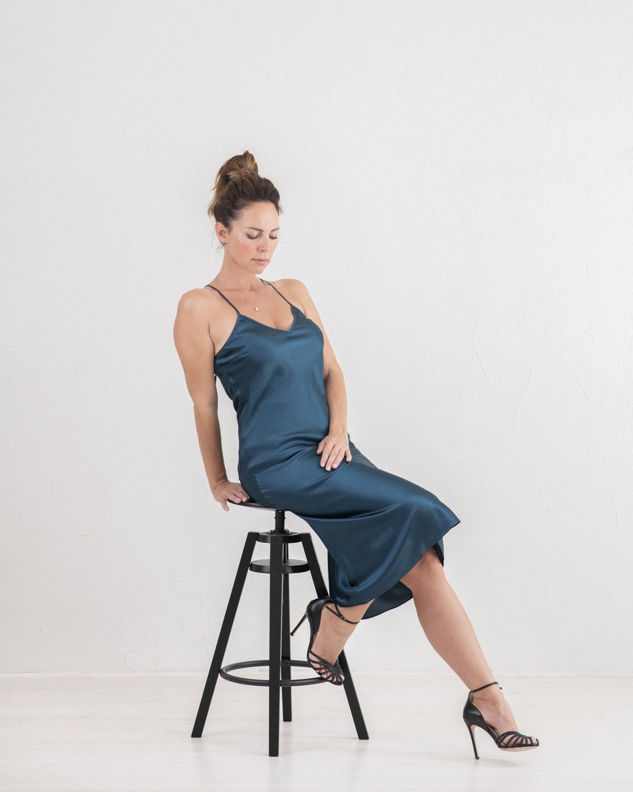 Crafted from 95% silk and 5% elastane, our garments ensure a flawless fit that flatters every figure, making every woman feel effortlessly regal. Constructed with French seams for a smooth, refined finish that feels soft against the skin.