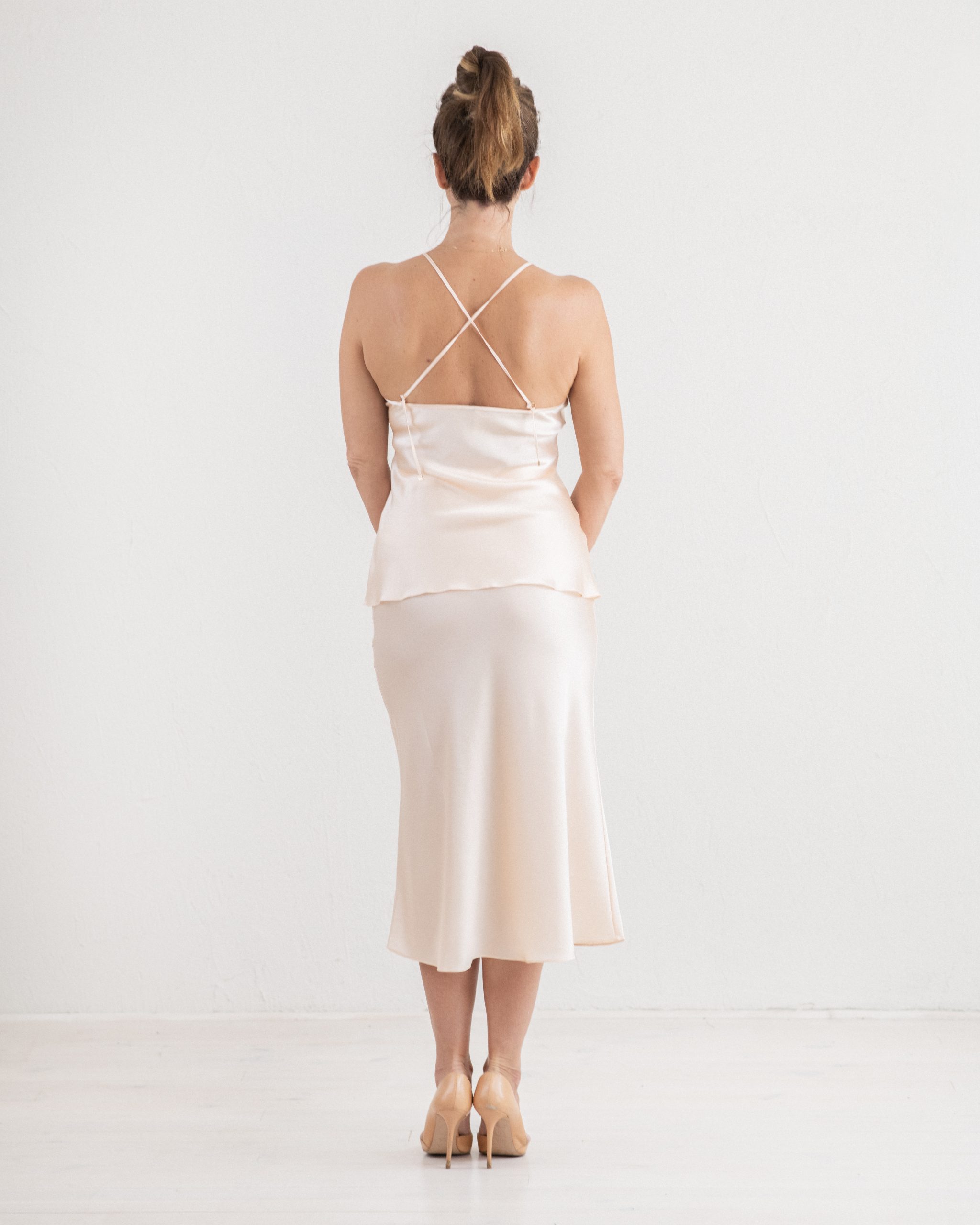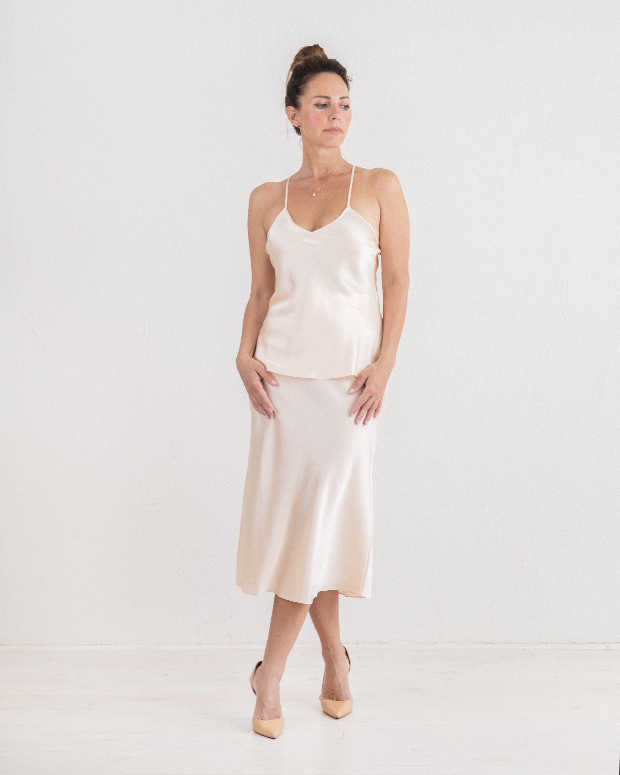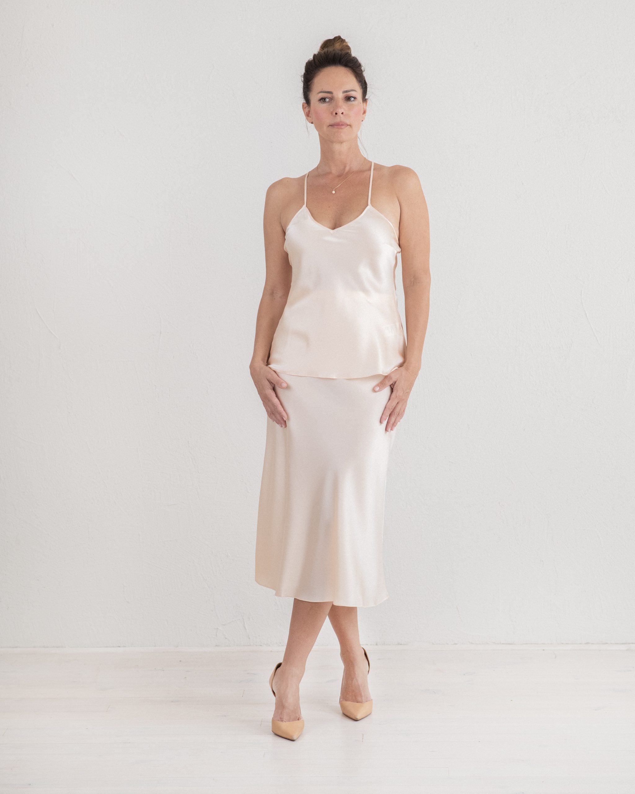 Crafted from 95% silk and 5% elastane, our garments ensure a flawless fit that flatters every figure, making every woman feel effortlessly regal. Constructed with French seams for a smooth, refined finish that feels soft against the skin.