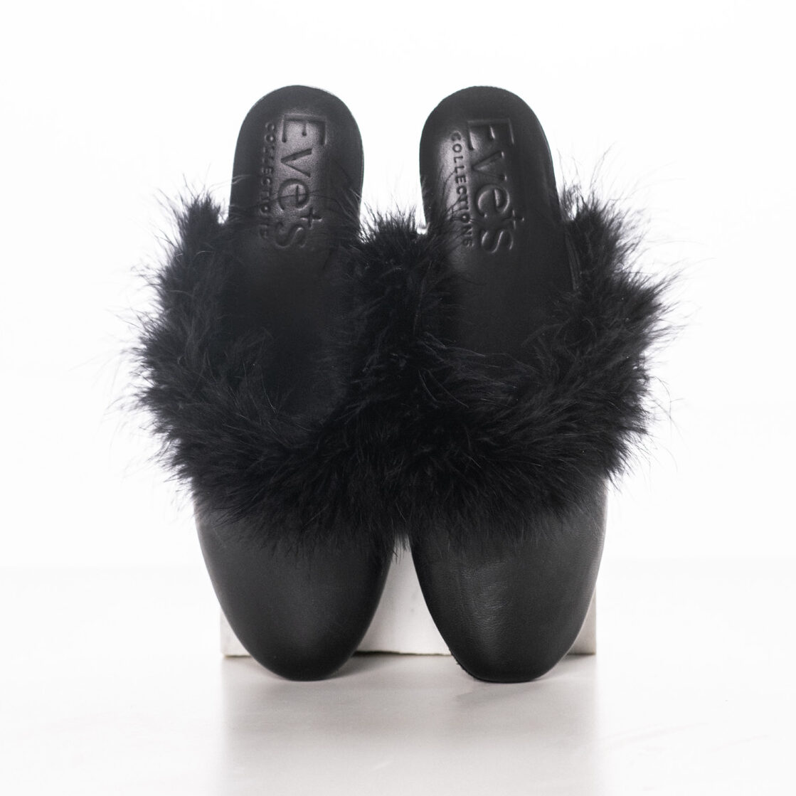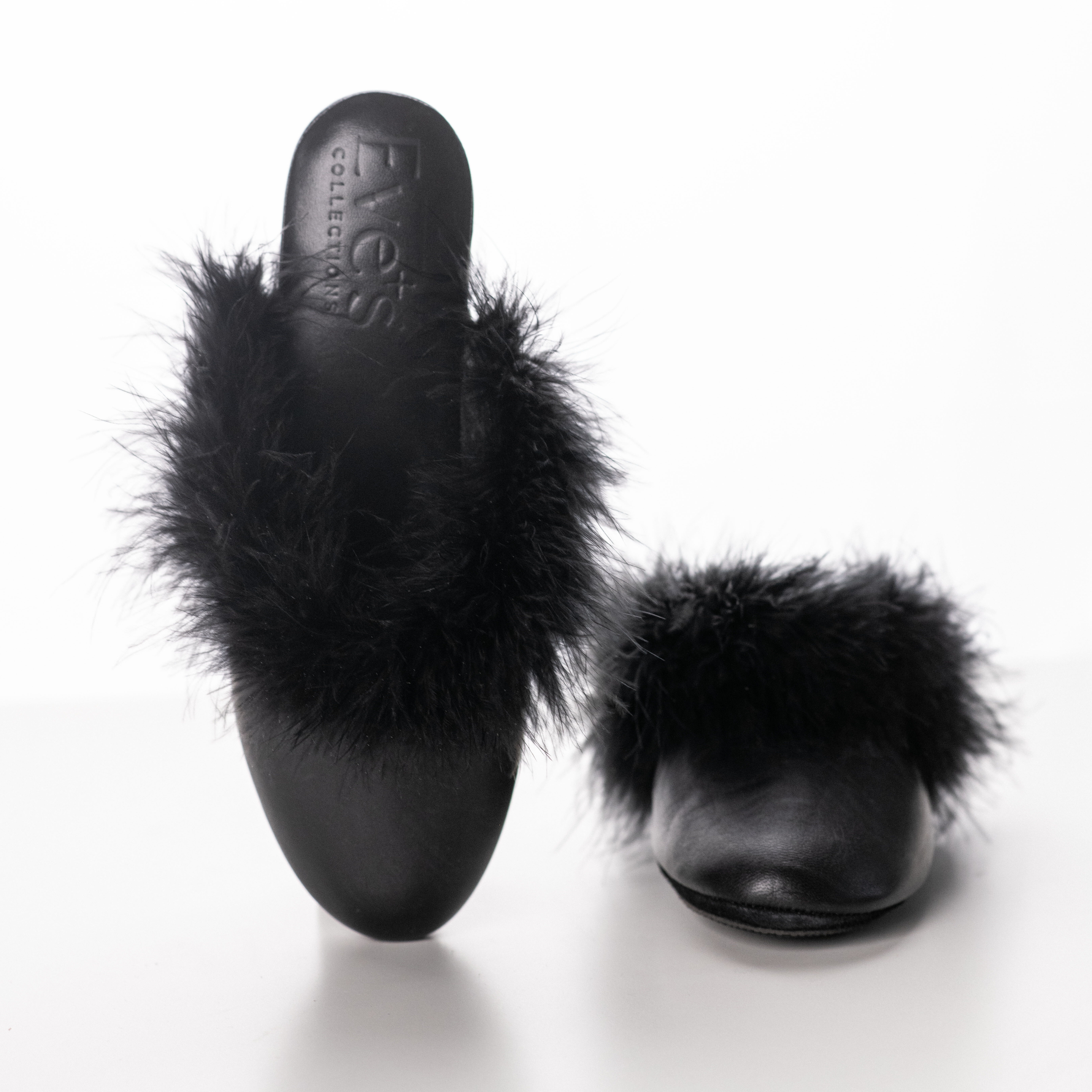 Introducing Eve’s artisanal black leather home slippers, expertly handmade in Italy to bring unmatched comfort and luxury to your home. These slippers are crafted from black natural leather, featuring a sleek, smooth nish, highlighted by real feathers that add a touch of extravagant glamour. The interior boasts a leather lining for a touch of opulence and additional comfort. Excellent choice for those who appreciate a boost, these slippers boast a full 4.5cm heel, combining chic style with practicality. Perfect for indoor wear, each slipper features a leather sole equipped with rubber spots that provide excellent grip, preventing slips for all your twists 😉 Experience the perfect blend of comfort, style, and safety with Eve’s luxury home slippers. Perfect for matching with our black nightgowns.