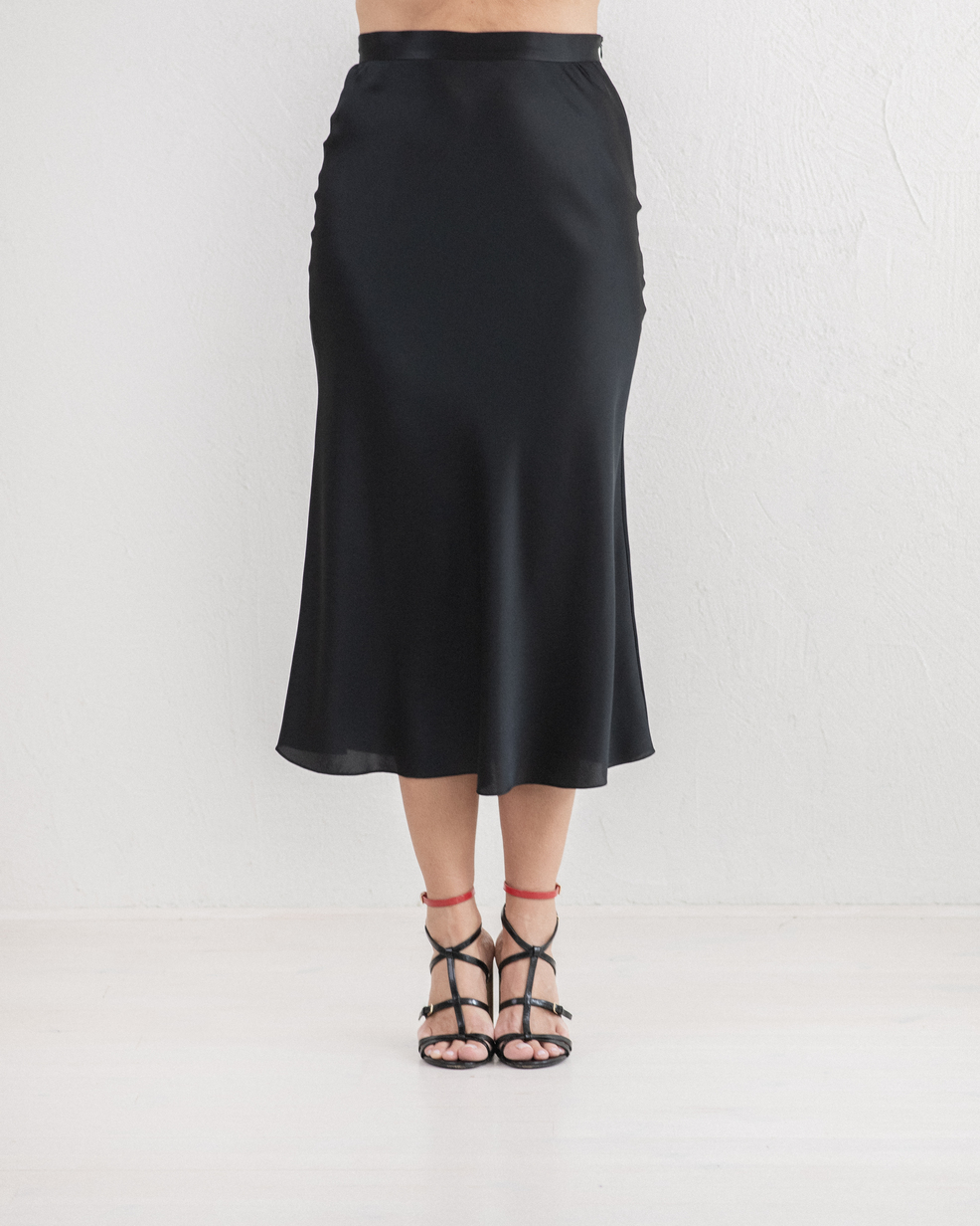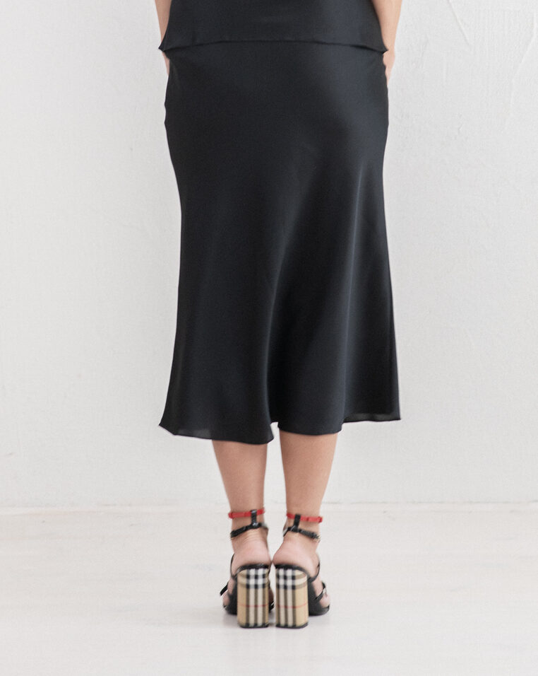 Predstavljamo vam očaravajuću svilenu suknju midi dužine. Ovaj poseban odevni komad otelotvoruje i luksuz i praktičnost, dizajniran da bude obožavan i poseban među vašom omiljenom garderobom. Izrađen je od najfinije vrhunske svile. Ova suknja ima elegantan pojas i diskretan skriveni cibzar kako bi lepše prijanjala uz vaš struk i bokove. Francuski šavovi, pedantno izrađeni, omogućuju tkanini da neprestano nežno miluje vašu kožu. Uparite ovu vanvremensku suknju sa omiljenom bluzom i patikama za dnevni šik outfit ili obujte sandale sa najvišom štiklom za sofisticirani večernji izgled. Ova svilena suknja nije samo komad odeće, već investicija u stil i eleganciju za ceo život.