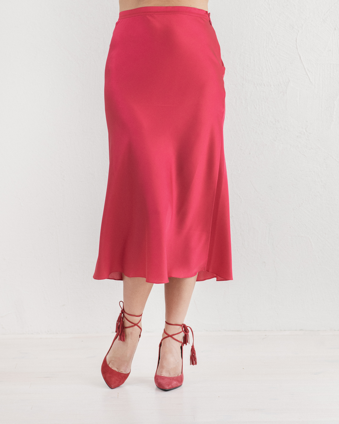 Predstavljamo vam očaravajuću svilenu suknju midi dužine. Ovaj poseban odevni komad otelotvoruje i luksuz i praktičnost, dizajniran da bude obožavan i poseban među vašom omiljenom garderobom. Izrađen je od najfinije vrhunske svile. Ova suknja ima elegantan pojas i diskretan skriveni cibzar kako bi lepše prijanjala uz vaš struk i bokove. Francuski šavovi, pedantno izrađeni, omogućuju tkanini da neprestano nežno miluje vašu kožu. Uparite ovu vanvremensku suknju sa omiljenom bluzom i patikama za dnevni šik outfit ili obujte sandale sa najvišom štiklom za sofisticirani večernji izgled. Ova svilena suknja nije samo komad odeće, već investicija u stil i eleganciju za ceo život.
