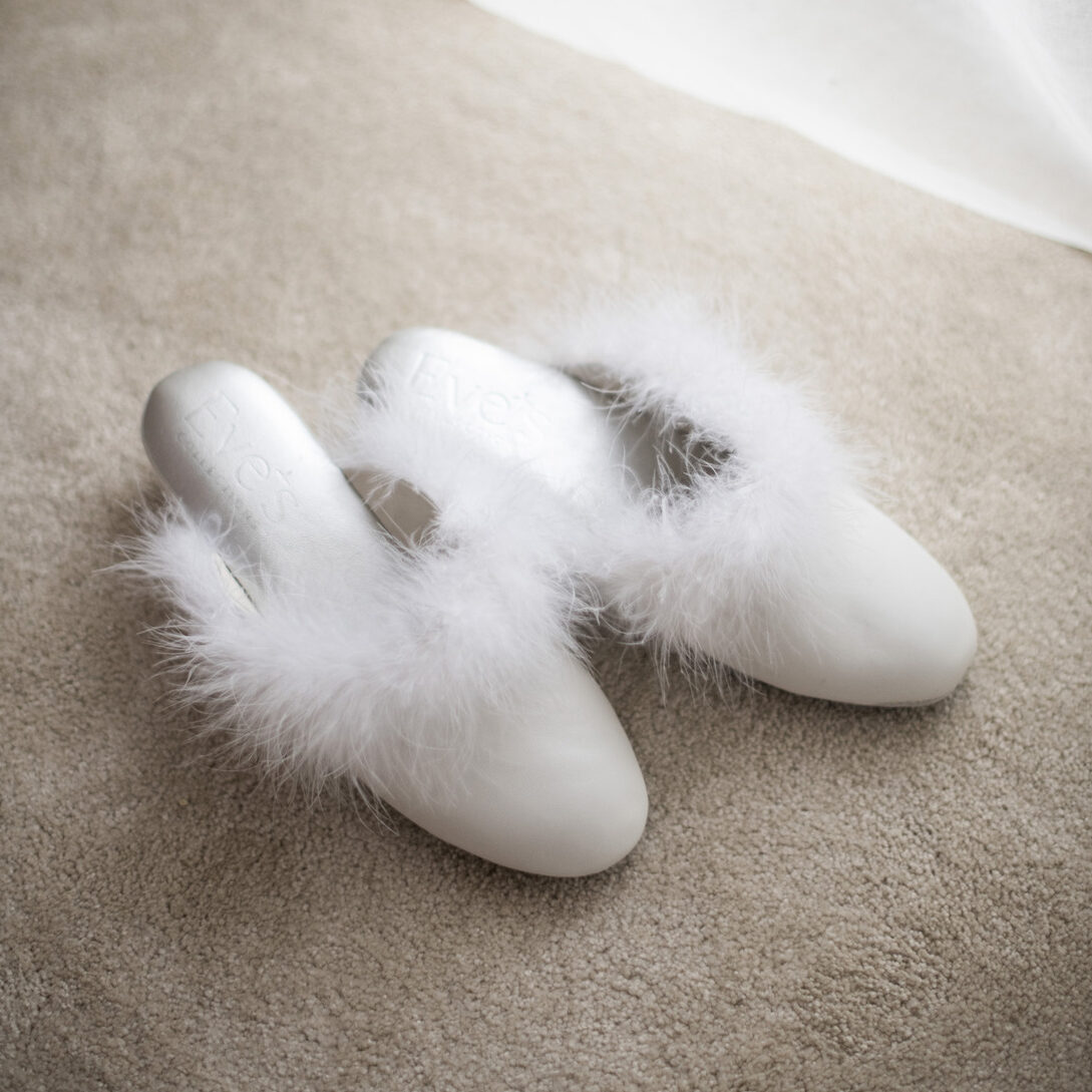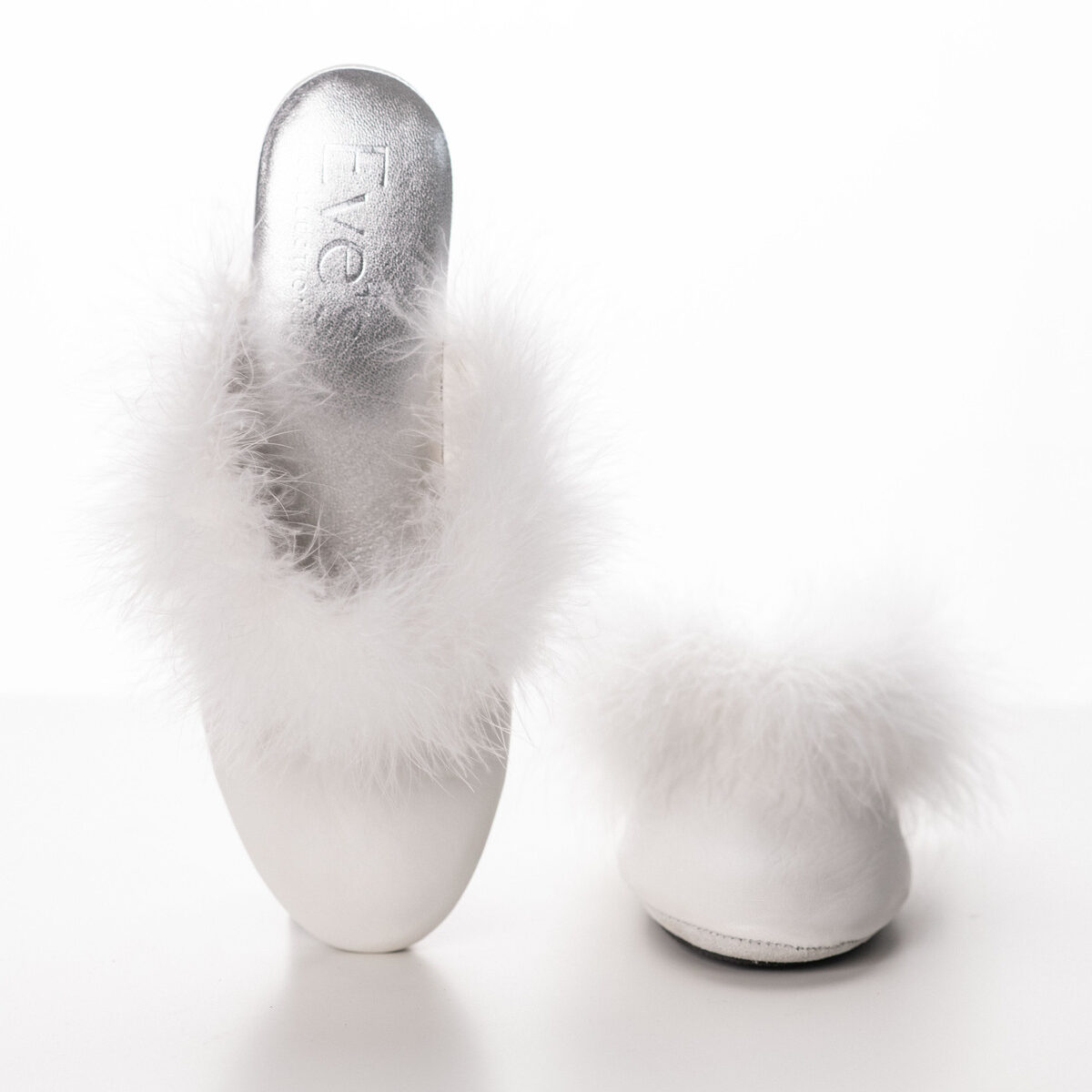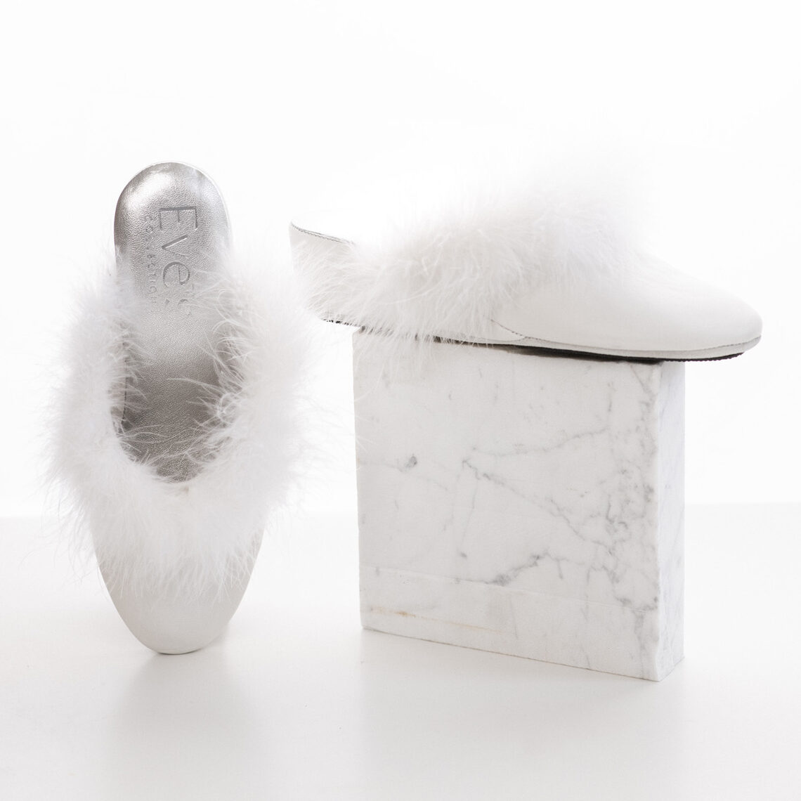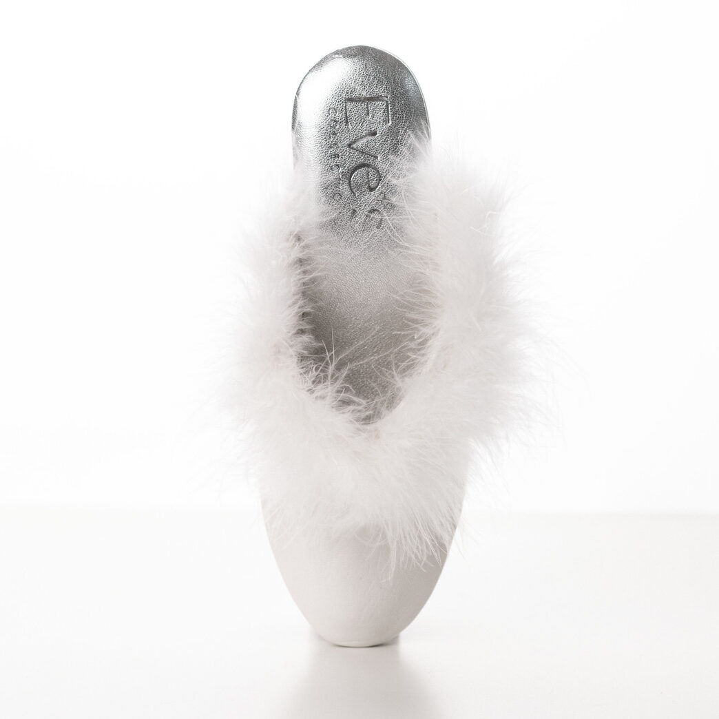 Predstavljamo Eve’s meke kožne kućne papuče u beloj boji, izrađene veštim rukama italijanskih velemajstora a dovedene da u Vaš lični ambijent unesu dodatnu udobnost i luksuz. Ove papuče izrađene su od prirodne kože bele boje koja će nežno, nežno obmotati Vaša stopala. Visina pete iznosi 4,5cm. Postava ovih papuča je takođe sačinjena od prirodne kože u srebrnoj boji, što ih čini još udobnijim i raskošnijim. Đon je takođe izrađen ok kože, a uz gumeno ojačanje, Vaš korak će biti siguran i lak. Jednostavno, savršene za kretanje po kući. Lepoti dizajna ovih mekih papučica doprinose i šik detalj u vidu prirodnog perja - Iskusite ovu divnu kombinaciju udobnosti, stila i sigurnosti, a ne zaboravite nešto posebno važno - Eve’s luksuzne papuče i Eve’s haljine su prosto savršena kombinacija.